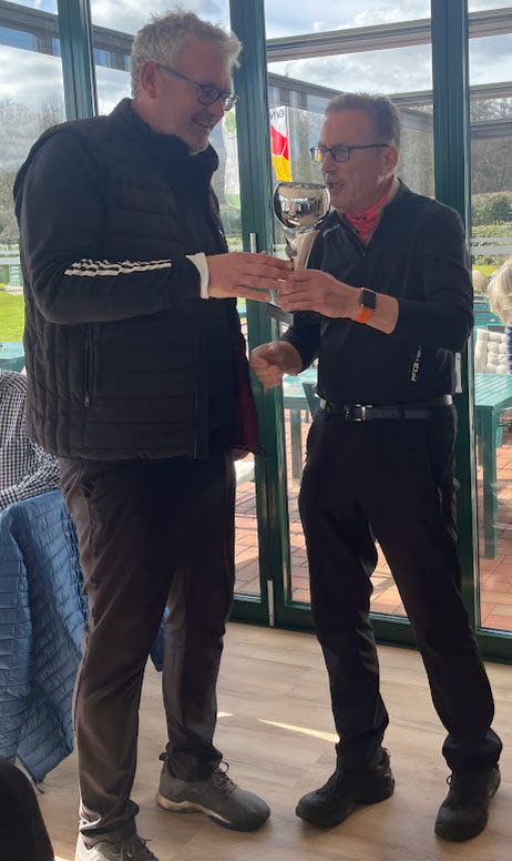 Mit dem dritten Platz im Cool Nine 11 kamen bei Jan-Gerd 2 Punkte hinzu, bei Sven auf Platz 2 3 Punkte und bei Markus lediglich 1 Punkt für die Teilnahme. Somit waren Markus, Jan-Gerd und Sven mit je 20 Punkten punktgleich und mussten ins spannende Putting-Stechen. Im ersten gewann Markus und war damit auf Platz 1. Danach musste um den 2. Platz geputtet werden. Hier gewann Jan-Gerd vor Sven. Markus darf nun für 1 Jahr den Wanderpokal mit nach Hause nehmen und folgte damit dem Sieger des Vorjahres, Gerd Martens.
